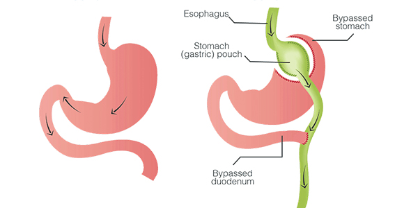 تغيير مسار الأمعاء الدقيقة: يتم تغيير مسار الأمعاء الدقيقة لتقليل امتصاص السعرات الحرارية.